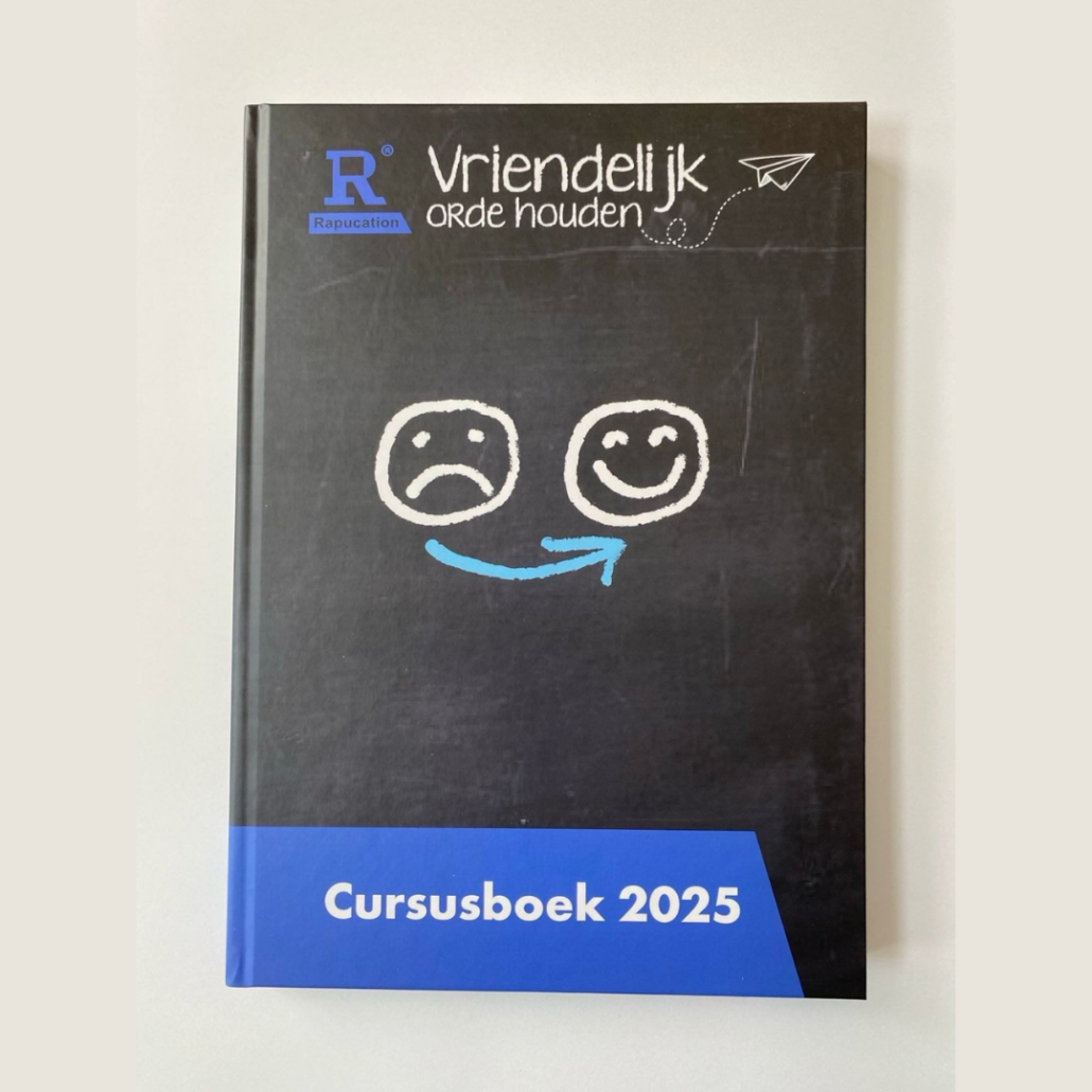 Een cursusboek 2025 van Vriendelijk Orde Houden met didactische aanwijzingen voor leerkrachten, docenten en studenten.