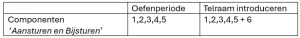 In de ‘Oefenperiode‘ gebruik je alleen de eerste vijf componenten. De ‘Oefenperiode‘ is bestemd voor docenten die nog geen ervaring hebben met ‘Aansturen en Bijsturen’.