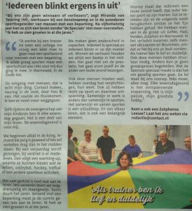 In dit artikel geeft Miranda van Tetering die als sportbegeleider werkt met mensen met een beperking dat ze als trainer lief en duidelijk is. Deze combinatie lijkt op het kader van Vriendelijk Orde Houden: Vriendelijk en duidelijk.