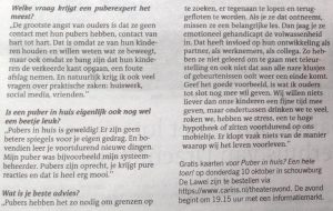 In het laatste deel komt naar voren dat de grootste angst van ouders is dat ze geen contact hebben met hun puber.