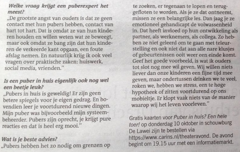 In dit artikel dat is verschenen in de Leeuwarder Courant van 7 oktober 2019 geef Marina van der Wal aan dat grenzen stellen belangrijk is.